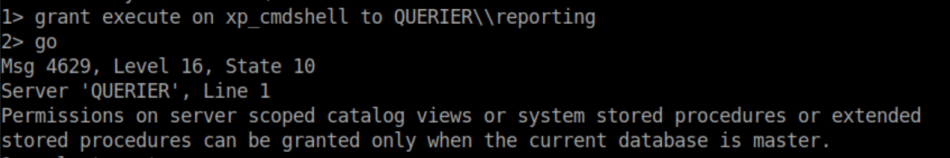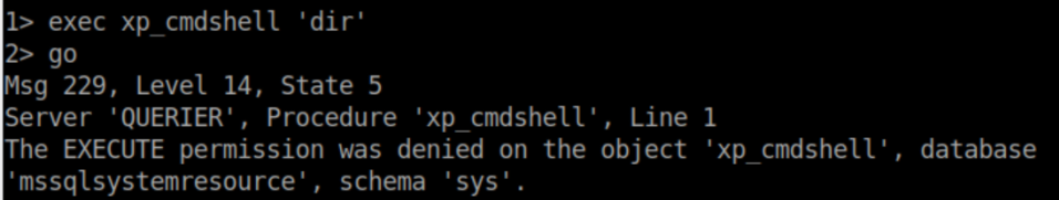 Unfortunately this account did not have permission to enable xp_cmdshell: