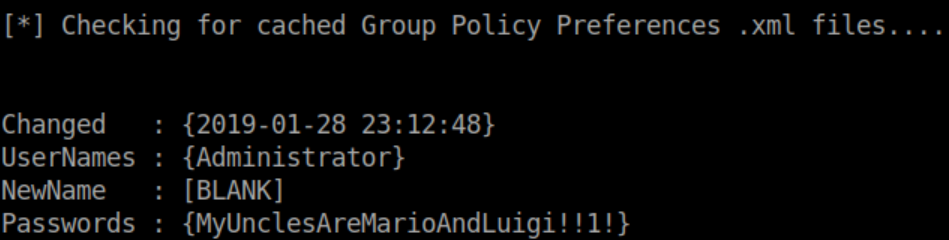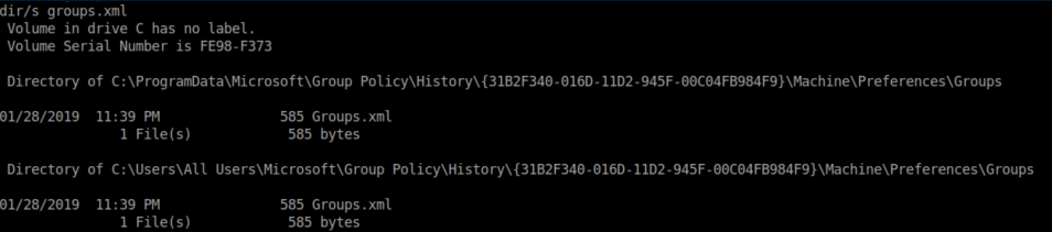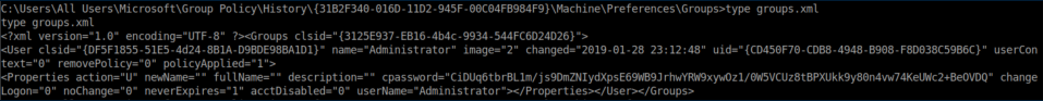 To escalate privileges, one of the first things you look for on a Windows machine is a groups.xml file: