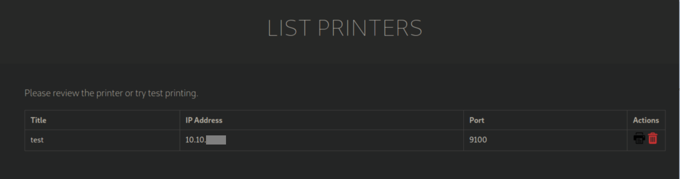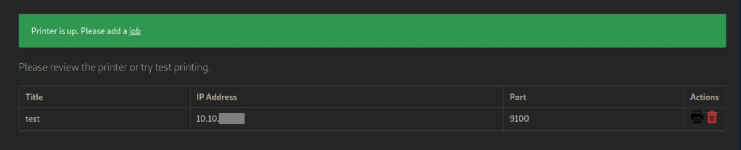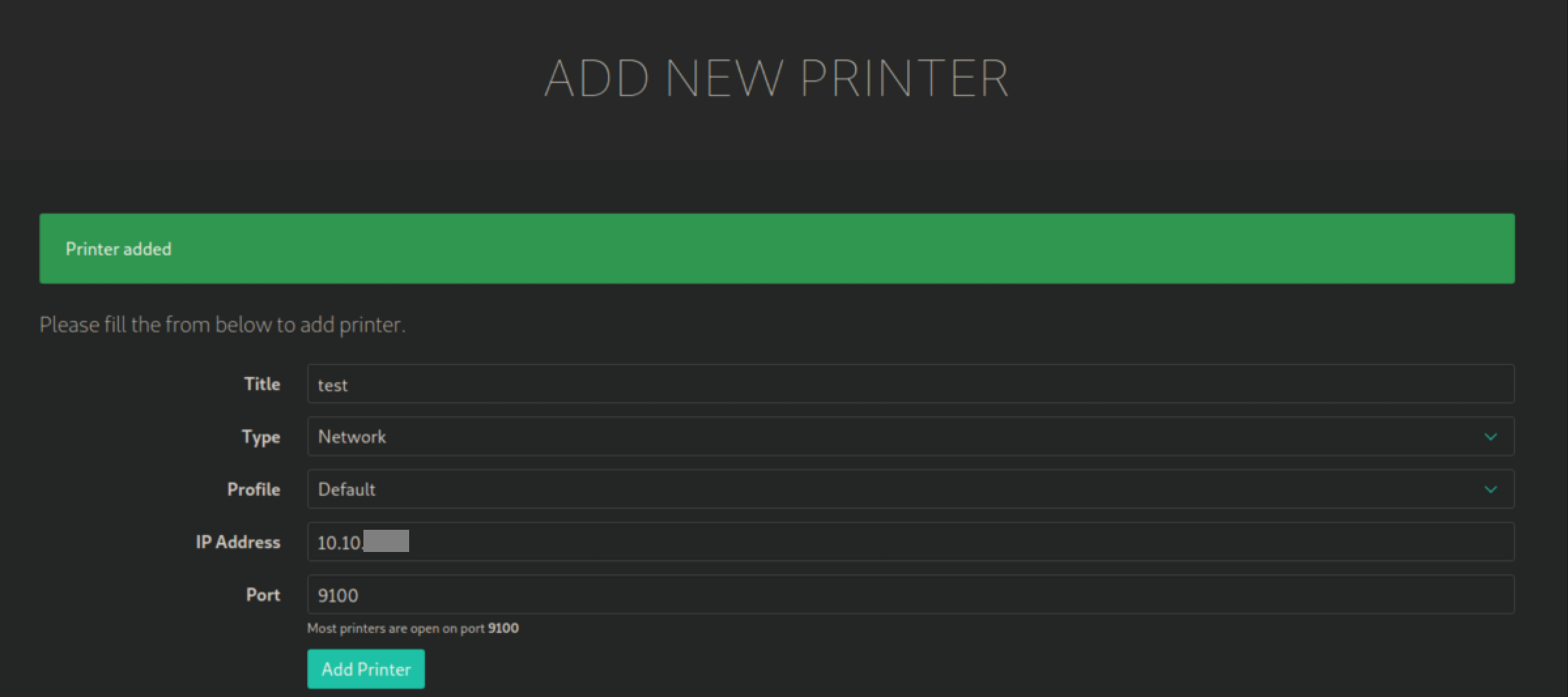 I tried adding a new printer with my IP: