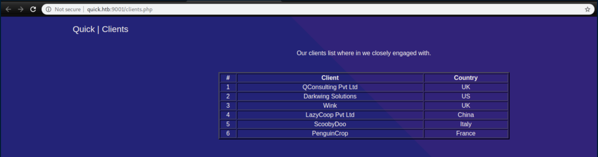 The .jsp page didn't work but now that I had a password, it was time to come up with some potential usernames and spray that password at the login page. By looking at the names of people who gave testimonials on the website and the client list which included the countries they were from, I compiled a list of potential emails:
