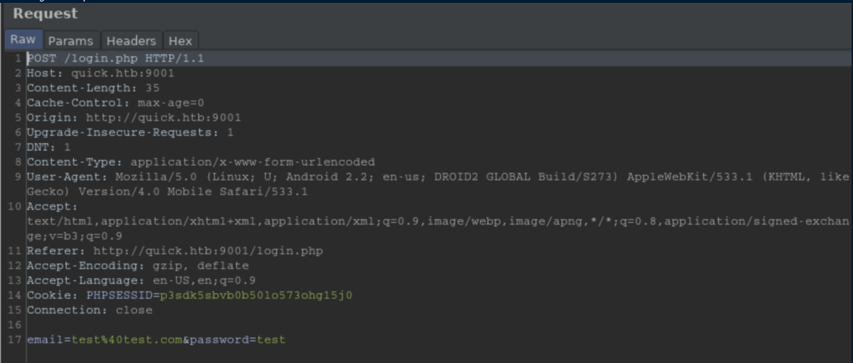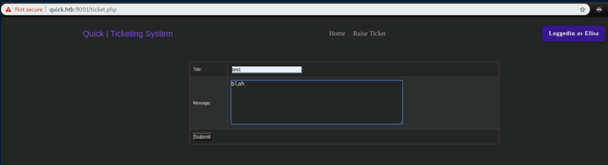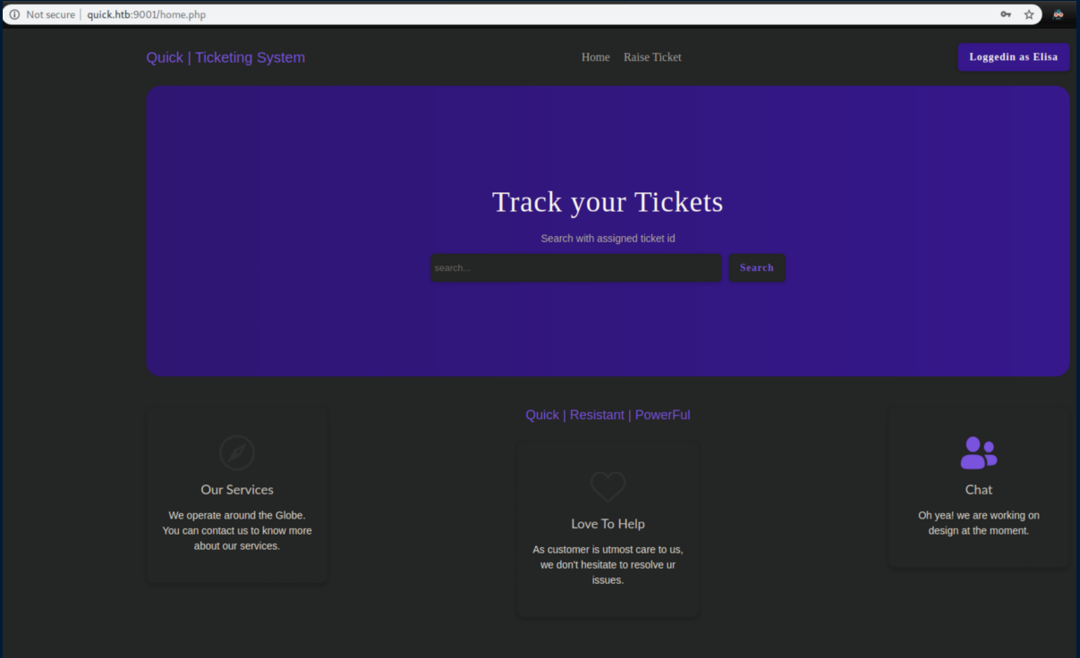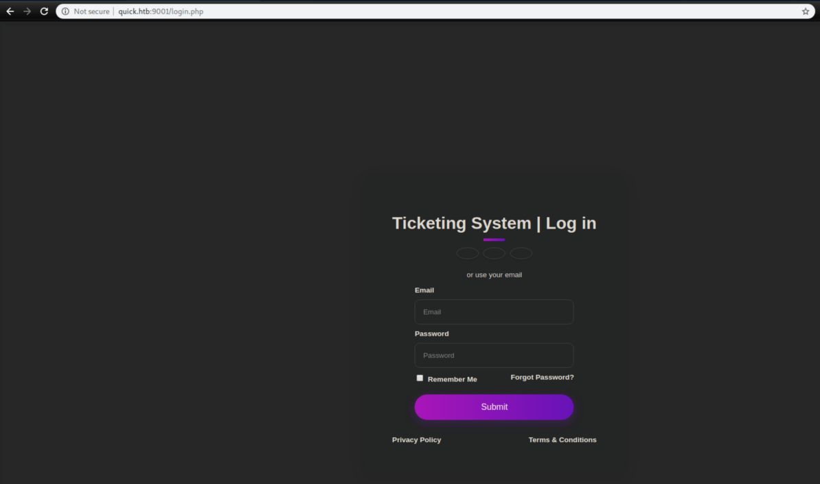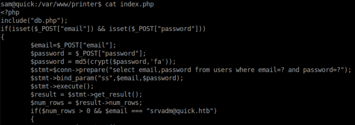The index.php file makes it clear that I needed to login as srvadm@quick.htb: