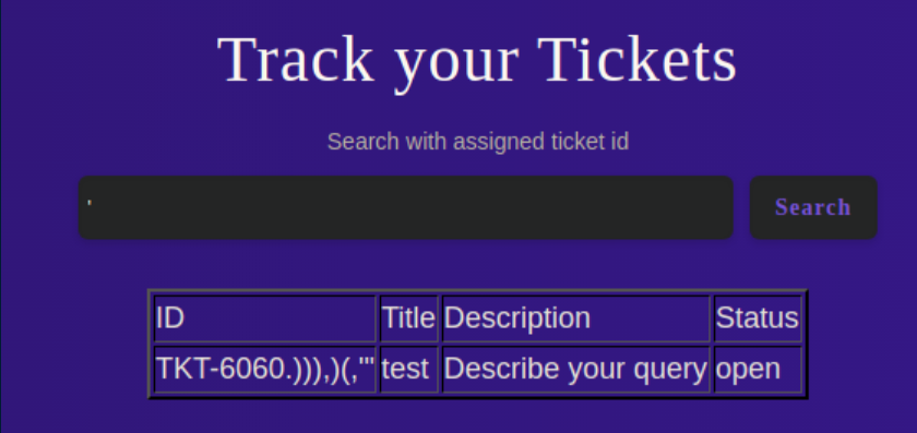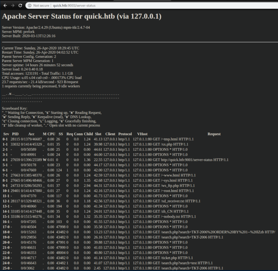 Ticket.php redirectd back to the login page. For once, /server-status was readable and other than what looked to be a SQL query, I didn't see anything interesting: