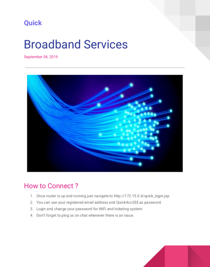 Connectivity.pdf contains a password and a quick login page: