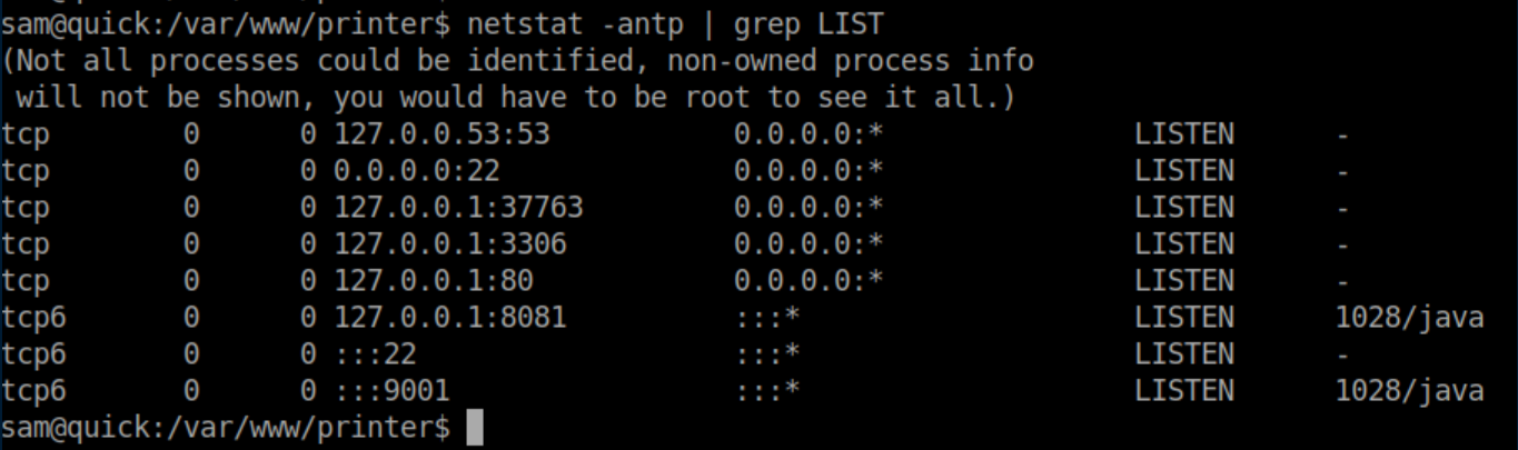 I couldn't crack these hashes and put it aside for the time being. Further enumeration showed some ports listening locally: