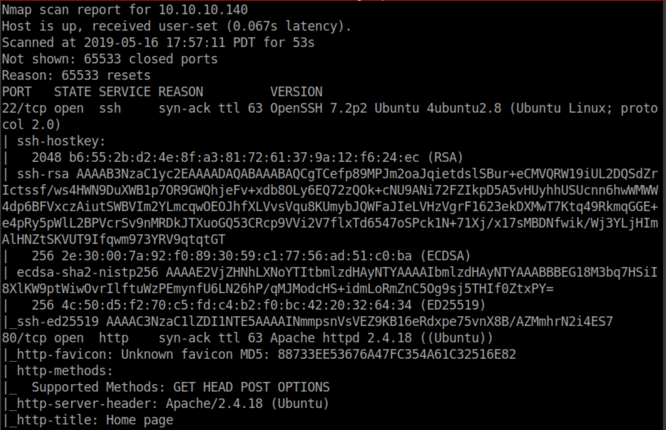 Nmap results: