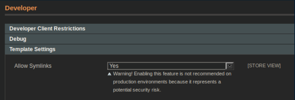 Now that the file has been uploaded, the next step is to enable symlinks. You can do this from System/Configuration/Developer: