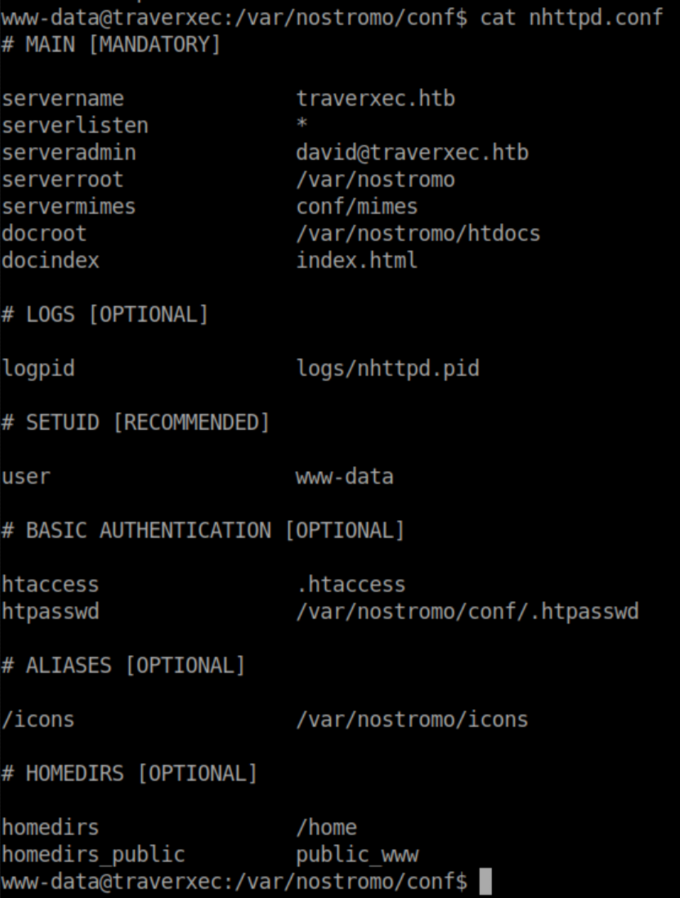 Remember that file /var/nostromo/conf/nhttpd.conf we looked at earlier? There is an interesting section at the bottom: