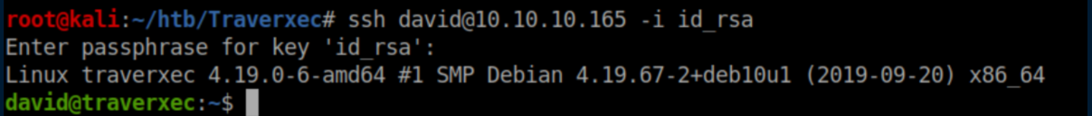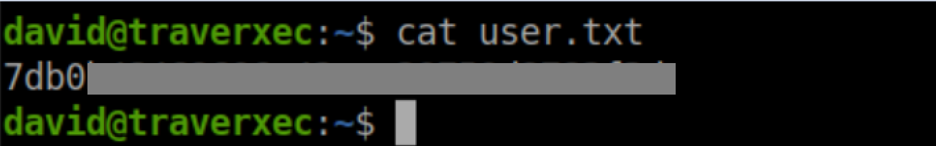 That 'hunter' password works and we now have ssh access as David: