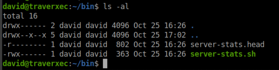 In David's home directory, we find a bin folder. Its contents: