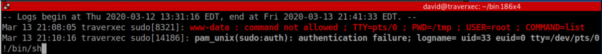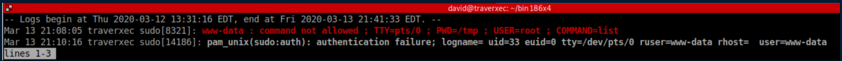 It looks like David has sudo access to journalctl.