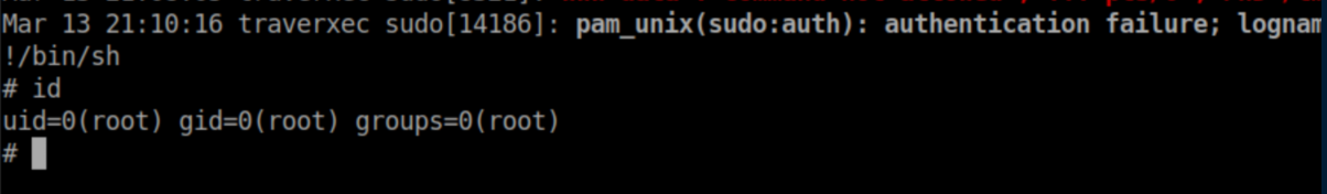 Now we can escape it with !/bin/sh: