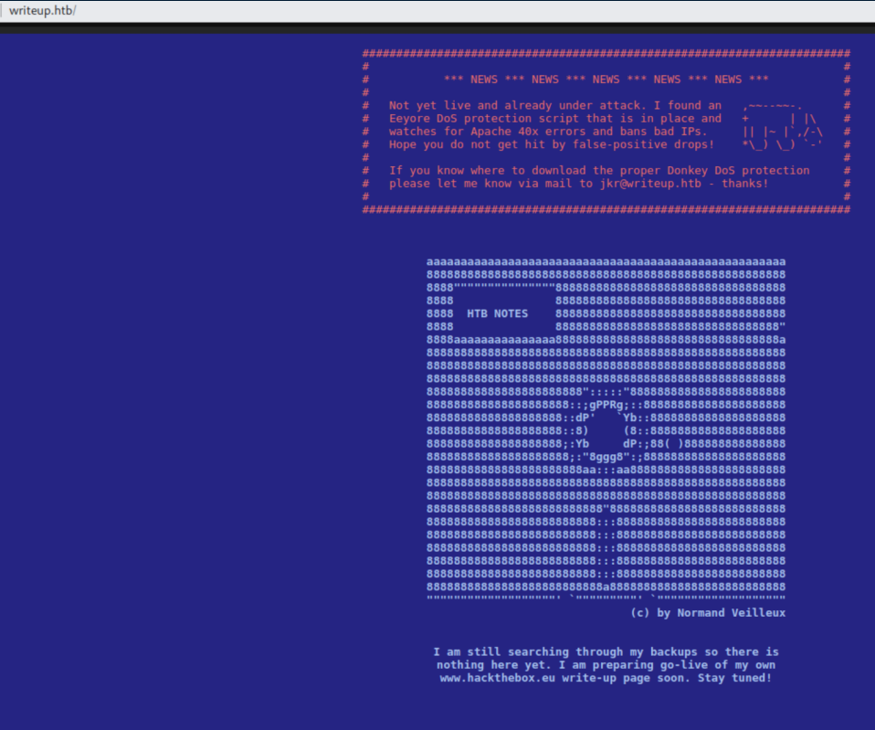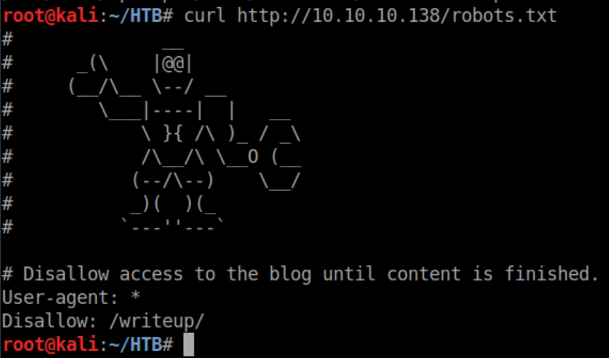 There's a warning of a script running that will watch for 40x errors and ban bad IPs so gobuster/dirb are not the way to go. Let's see if there's a robots.txt file: