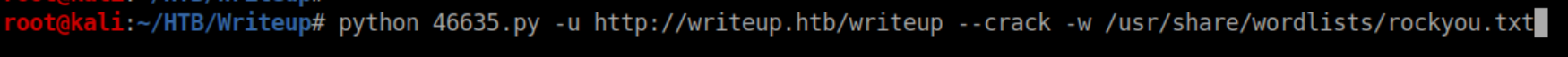 I try running the exploit with rockyou.txt and it appears to work: