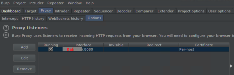 By default, Burp starts its proxy listener on 127.0.0.1:8080. You will need to edit it to your IP: