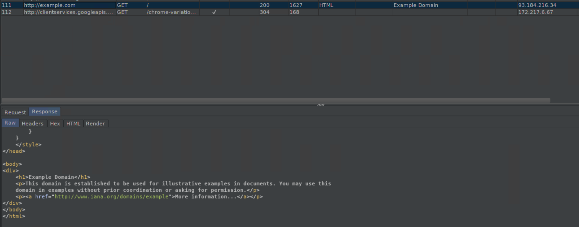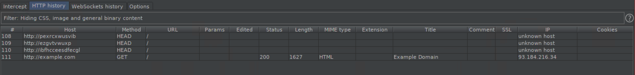 Open up a HTTP website in Chrome and you'll see something like this in the 'HTTP History' window in Burp: